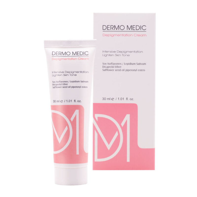 کرم ضد لک درمومدیک به گونهای فرمولاسیون شده که آنزیم تیروزیناز که عامل اصلی ایجاد لک در پوست است را مهار کرده و باعث کاهش تولید ملانین و در نتیجه روشن شدن پوست و از بین رفتن لکها میشود. همچنین این محصول به عنوان یک آنتی اکسیدان قوی عمل کرده و از پوست در برابر اثرات مخرب رادیکال های آزاد محافظت می کند.