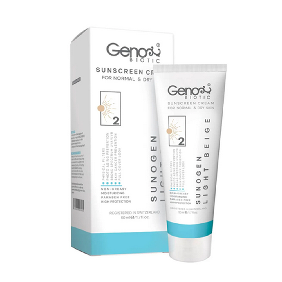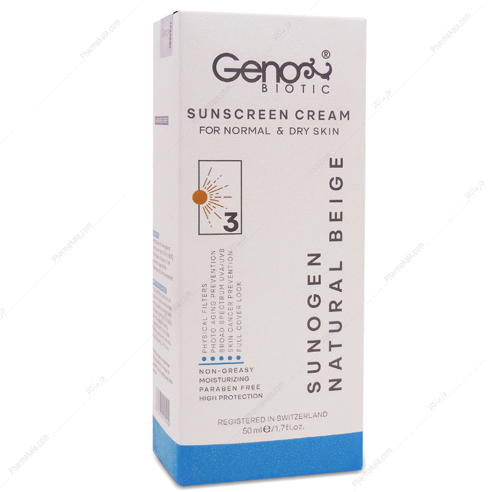 کرم ضد افتاب پوست خشک ژنوبایوتیک بژ طبیعی spf50